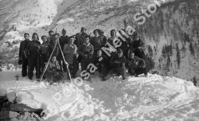 Zona di Roure. Banda di Fiore Toje, al centro in piedi e dietro la sorella. Di fianco a destra Renato Prina.A destra accovacciato Giuseppe Dalle Mura (Barbun). La persona anziana è il padre di Toje . Accanto a destra Ettore Serafino.