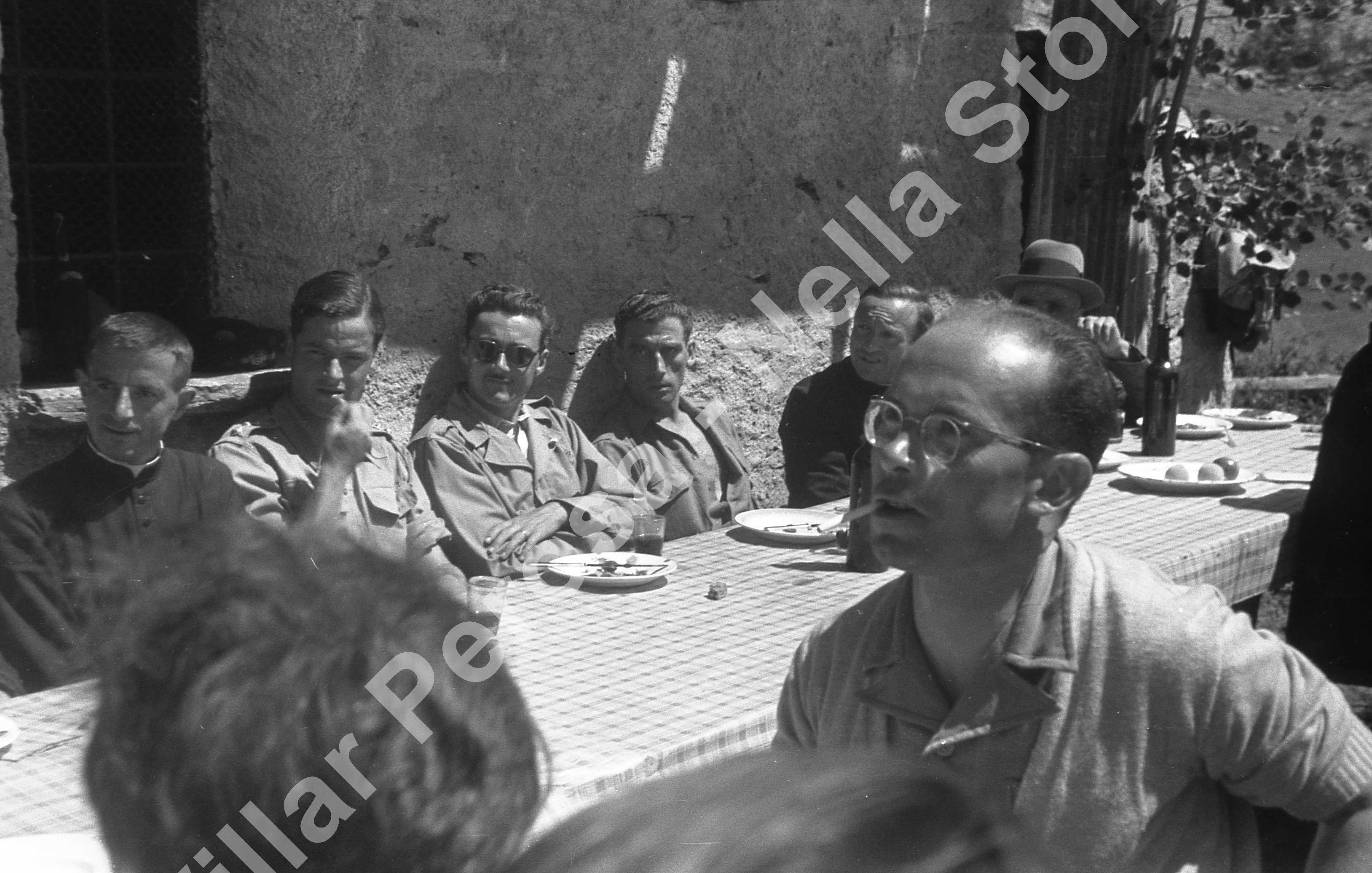 A fine guerra, in val Troncea, un gruppo di partigiani si incontra con un gruppo di soldati scozzesi. Tra i partigiani terzo da sinistra con gli occhiali Maggiorino Marcellin. In primo piano con gli occhiali da vista Pier Luigi Lana.