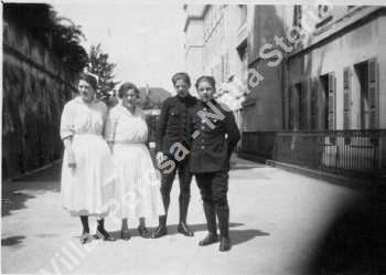 Ruffin Angelica, moglie francese di Berton Celestino e madre di Alex Berton con un gruppo di camerieri e autisti d'albergo.