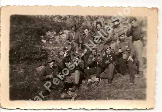Gruppo di partigiani della banda denominata della "Rossa". Alberto Bedin si trova al centro in basso.