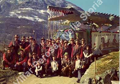 Carro realizzato per il carnevale di Pinasca. L'autocarro che faceva da supporto era quello di Bernardino Richiardone e la foto è stata scattata nel suo cortile.