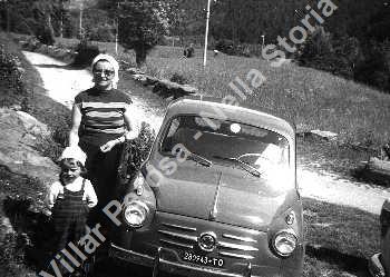 I soggetti fotografati sono Rosso Caterina con la figlia Silvana. L'auto è la Fiat 500.