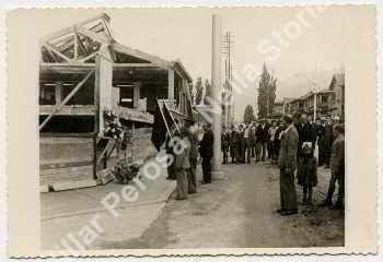 Deposizione fiori nel punto in cui furono fucilati i pompieri il 26 aprile 1945.
