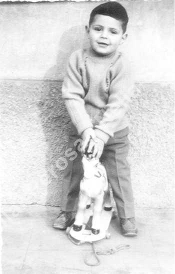 Il soggetto fotografato è Rostagno Carlo, con il suo cavalluccio di legno.