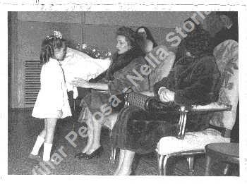 Festa di fine anno, presente Donna Marella. La bambina che porge i fiori è Lorena Zanin