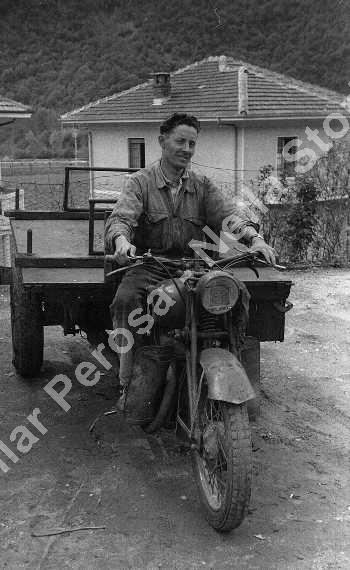 Il soggetto fotografato è Ribetto Giovanni sul suo motocarro.