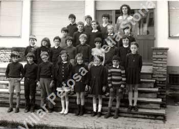 Tra i soggetti fotografati vi è Canino Graziella, in prima fila, la quinta da sinistra. Foto di gruppo sulle scale della palestra, la maestra è Ebe Balma