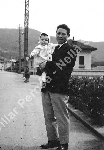 Il soggetto fotografato è Russo Vincenzo. Sulla destra si vedono le vecchie case operaie in via Nazionale, ora demolite.