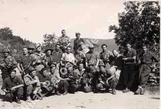 L'anno è approssimativo. Gruppo di partigiani con il capitano inglese O'Regan Patrick, (il secondo da destra in piedi) più noto con il semplice diminutivo di "Pat"