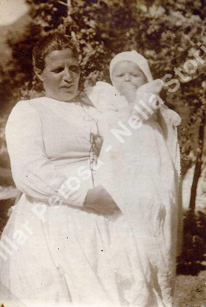 La sig. ra Grangetto è ritratta con Giovanni Agnelli al quale faceva da balia, davanti alla villa di Villar Perosa. Nativa di S. Pietro affidò a una donna in borgata il proprio figlio appena nato per trasferirsi a casa Agnelli, che lasciò quando le fu proposto di trasferirsi a Torino, anche perchè aveva un nuovo bimbo in arrivo.