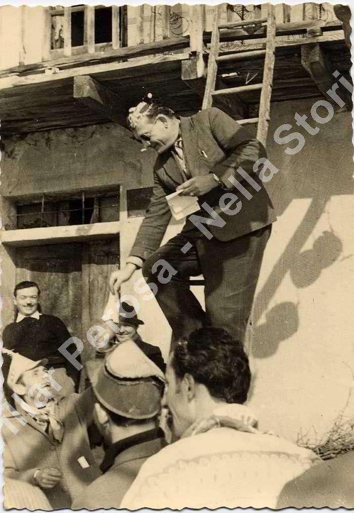 Carnevale di Gialetto: lettura della sentenza del gallo. Riconoscibili da sinistra: Prot Armando e Prot Angelo.