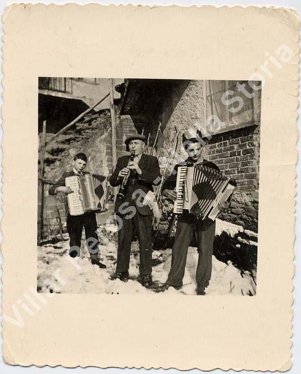Gli ultimi musicisti che suonarono al carnevale di Gialetto. Galliano Sergio, Franzoso Giuseppe (maestro di fisarmonica di Dubbione), Prot Guido. L'anno è incerto: 1953 - 1954