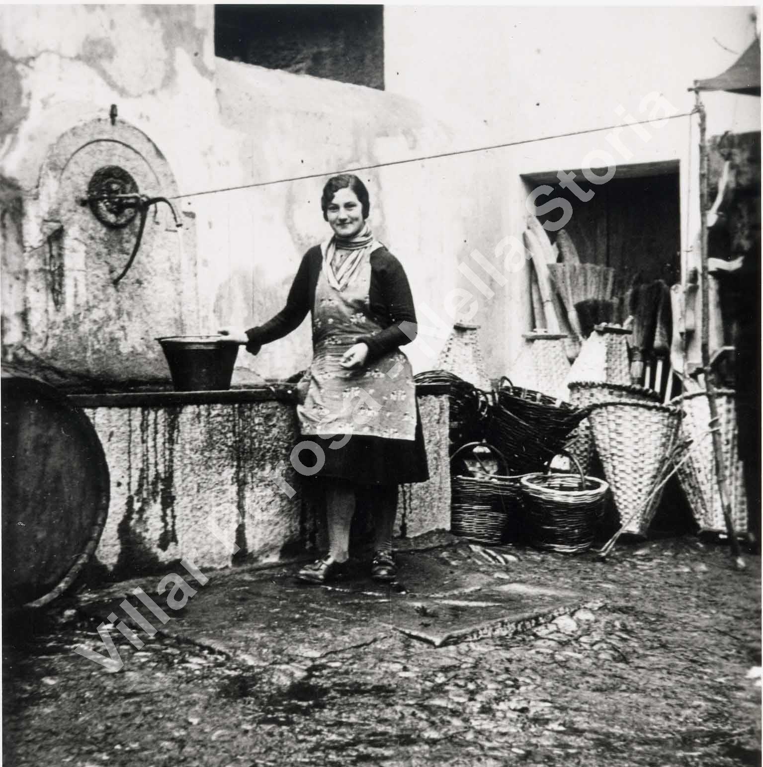 L'anno è approssimativo. A destra si intravede un negozio di gerle, scope, slitte ...