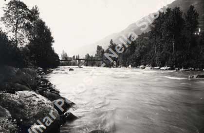 Ponte in legno di accesso al paese di San Germano. La fotografia è conservata nell'archivio Widemann nel Municipio di San Germano, classificata con la seguente sigla RO538251 / PA10.