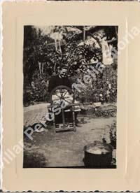 Donna anziana intenta a filare la lana con l'arcolaio. Prima metà del '900.