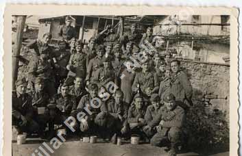 Periodo approssimativo: 1940 - 1945. Foto scattata nel cortile della "Cantina del Maniscalco" e Perosa Alta. Una delle caserme si trovava in via Coavour angolo via Montegrappa, così i militari erano di casa alla trattoria.