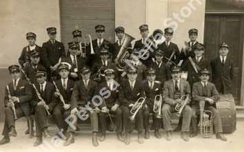 La banda di Perosa Argentina. Probabilmente la foto risale agli Anni Venti ed è stata scattata dallo studio "Balmas" di Perosa Argentina.