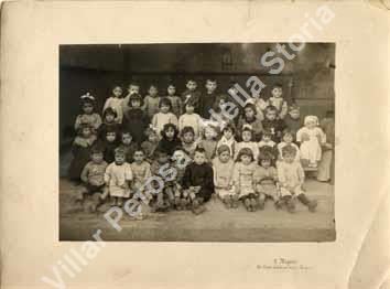 Nella fila in basso, seconda e terza da destra vi sono Merlo Maria e Paolina con i compagni di asilo. La famiglia era emigrata per un periodo in Francia.