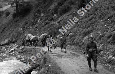 Dal 15/9/43. Salendo verso il colle del Nivolet. Dopo l'8 settembre Ettore Serafino intraprende il viaggio di ritorno verso Bobbio Pellice, passando per le montagne. E' in compagnia di Franco Faldella, al centro con la giacca chiara.