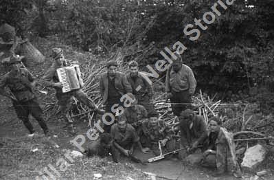 Autunno 1944 - Inverso Pinasca. Gruppo di partgiani con fisarmonica.