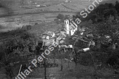 Autunno 1944 - Ai Clot di Inverso Pinasca, si vedono le case bruciate per rappresaglia dai tedeschi.