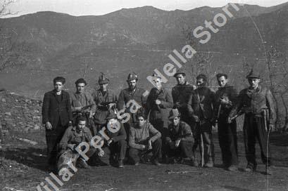 Autunno 1944. Gianni Gay,a fianco a sinistra Marcello Long e un gruppo dei suoi. In basso da sin. il secondo è Guido Baret, poi Umberto Murglia e Aldo Long.