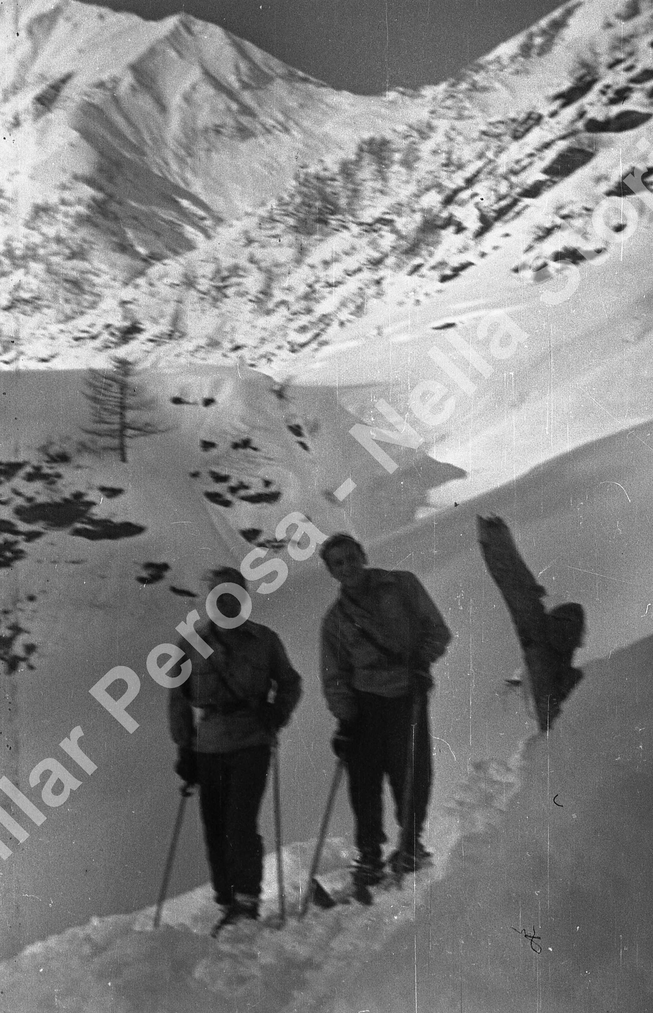 Due partigiani stanno salendo da Rodoretto al colle della Valletta. Ferruccio (a sinistra ) e Mario Cinquetti.