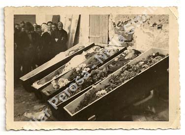 Le bare dei cinque partigiani uccisi al Ticiun l'11 novembre 1944. La foto è stata scattata il giorno successivo.