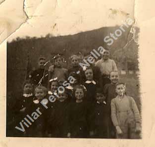 La pluriclasse di Podio. Si riconoscono Franco Prot, Ernesto Prot, Giorgetta Prot, Elmo Bert, Ugolina Rostagno, Ada Giustetto. L'anno scolastico è il 1948 - 1949.