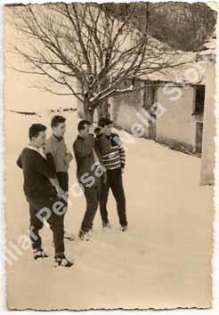 La foto è stata scattata intorno al 1960. Mauro Prot è il secondo da sinistra. La località di Serre Marchetto per i pinaschesi era meta di gite sia in estate che in inverno. L'anno approssimativo è il 1960.