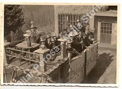 Uno dei primi carri che sono stati costruiti per il carnevale di Pinasca, visto dall'alto. L'autocarro che faceva da supporto era quello di Bernardino Richiardone e la foto è stata scattata nel suo cortile.