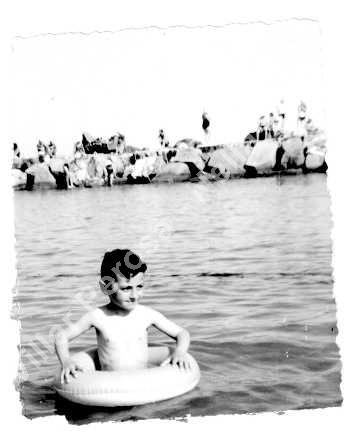 Costantino Claudio al mare, faceva il bagno con il salvagente.