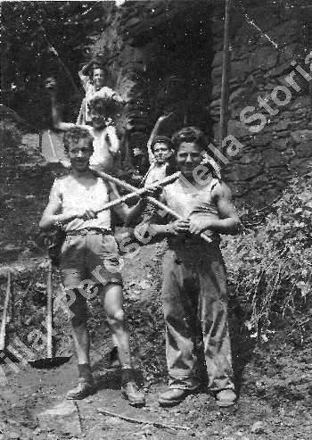 Tra i soggetti fotografati Brun Aldo al lavoro in una cava di pietra. Il materiale veniva utilizzato per fare muri di sostegno per le mulattiere.
