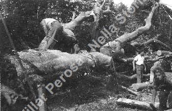Albero abbattuto da un temporale, era una pianta di valore nel parco Agnelli. Gli operai della ditta Bono sistemavano il giardino e i laghetti del parco.