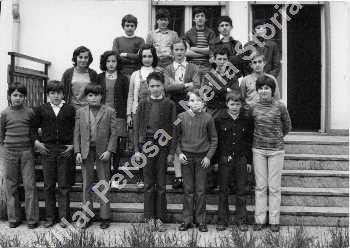 Tra i soggetti fotografati Re Giovanni. Foto di classe scattata sulla scale del cortile interno della scuola media di Villar Perosa.
