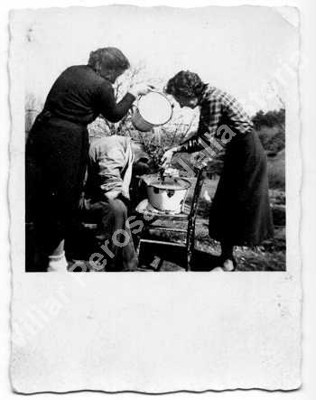 Bruna Dalla Vittoria (la più giovane) e la madre lavano la testa presumibilmente al padre.