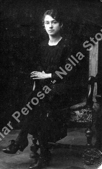 Il soggetto fotografato è Ughetto Germana, proprietaria negli anni della seconda guerra mondiale della Tabaccheria di Villar Perosa in piazza Centenario. Foto scattata in studio fotografico.