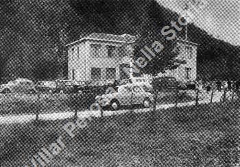 Veduta del ristorante Vinçon Bianco, oggi su territorio di San Germano Chisone, allora su Villar Perosa. Si vedono auto degli anni '30 - '40.