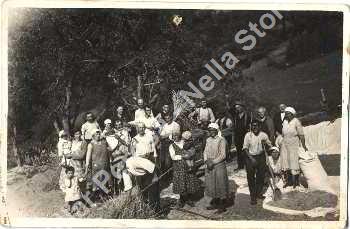 E' una delle prime occassioni in cui a Pramollo il grano viene trebbiato con la "macchina" essendo da poco arrivata l'elettricità. Prima si usavano i lunghi bastoni detti "cavaghià" correggiato.