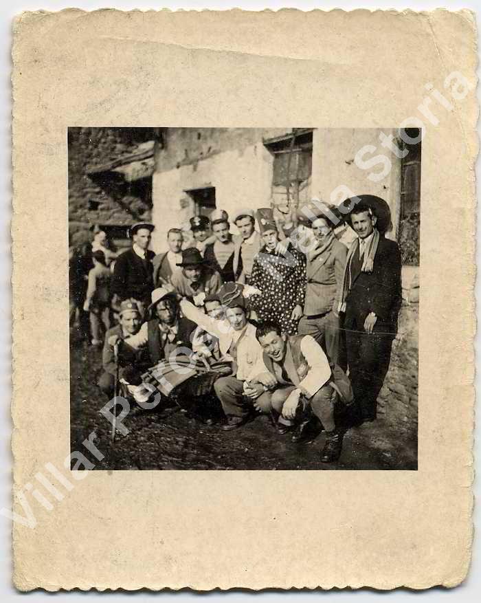 Forse 1953. Carnevale di Gialetto. Il carnevale si è interrrotto nel 1957 con la morte di uno dei giovani della borgata (Franco Prot) in un incidente motociclistico. Per qualche anno è continuato nella borgata vicina di "Podio".
