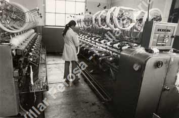 Operaia al lavoro nel reparto Dipanatura dello stabilimento Widemann.