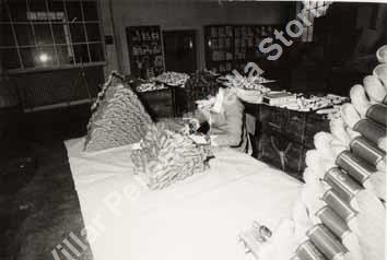 Operaia che appone la marca di fabbricazione sui prodotti.