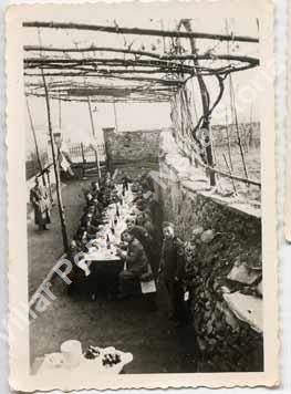 Periodo approssimativo: 1940 - 1945. Foto scattata nel cortile della "Cantina del Maniscalco" e Perosa Alta. Una delle caserme si trovava in via Coavour angolo via Montegrappa, così i militari erano di casa alla trattoria.