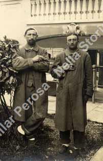 Merlo Terenzio è ritratto con un amico in convalescenza a Novalesa. L'anno non è certo, il periodo è quello della prima guerra mondaiale tra il 1915 e il 1918.