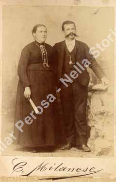 I soggeti ritratti sono Castagno Bonifacio e Galliani Maria, nonni di Merlo Paolina. La foto è stata scattata nello "Studio fotografico Milanese" di Pinerolo.