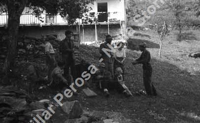 Autunno 1944. Nella foto si riconosce la staffetta Viola Lageard, in piedi con la camicetta bianca. Accanto a lei Gianni Gay, accovacciato ai piedi Francesco Dema. In successione verso sinistra Umberto Murglia.