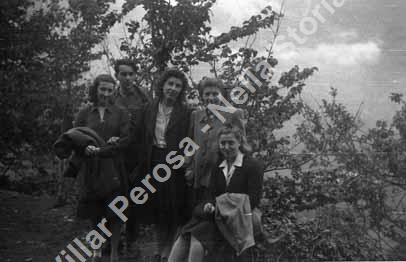 Autunno 1944 - Inverso Pinasca. Staffette con Gianfranco Fagioli (detto Verona. Livia Sarvogan d'Osoppo (la donna seduta). A sinistra Maria Teresa Brignone (detta Cita), al centro Ada Boiral e Viola Lageard.