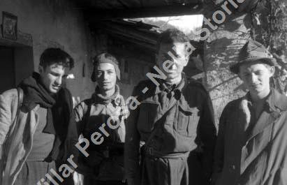 Autunno 1944. Probabilmente Inverso Rinasca. Da sinistra: Romolo Carrera (morto a Cantalupa), Angelo Squeri, Rodolfo Sacco, Gianni Daghero.